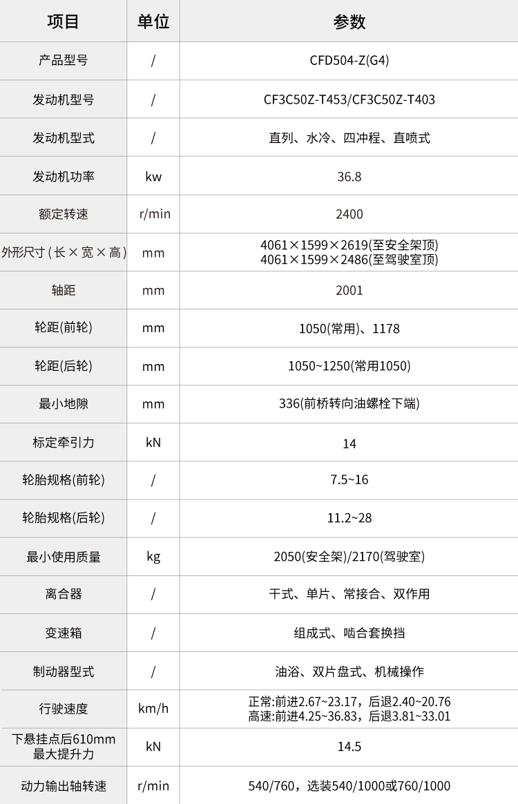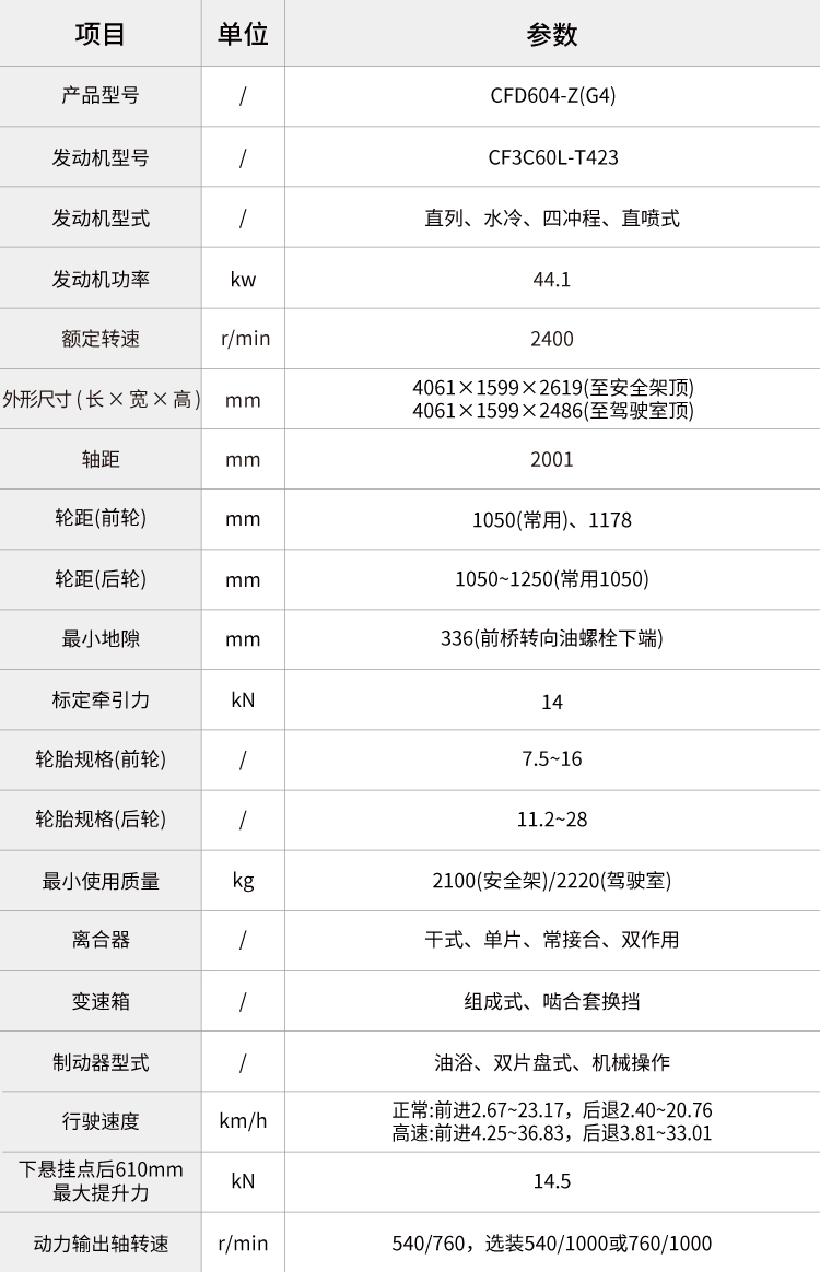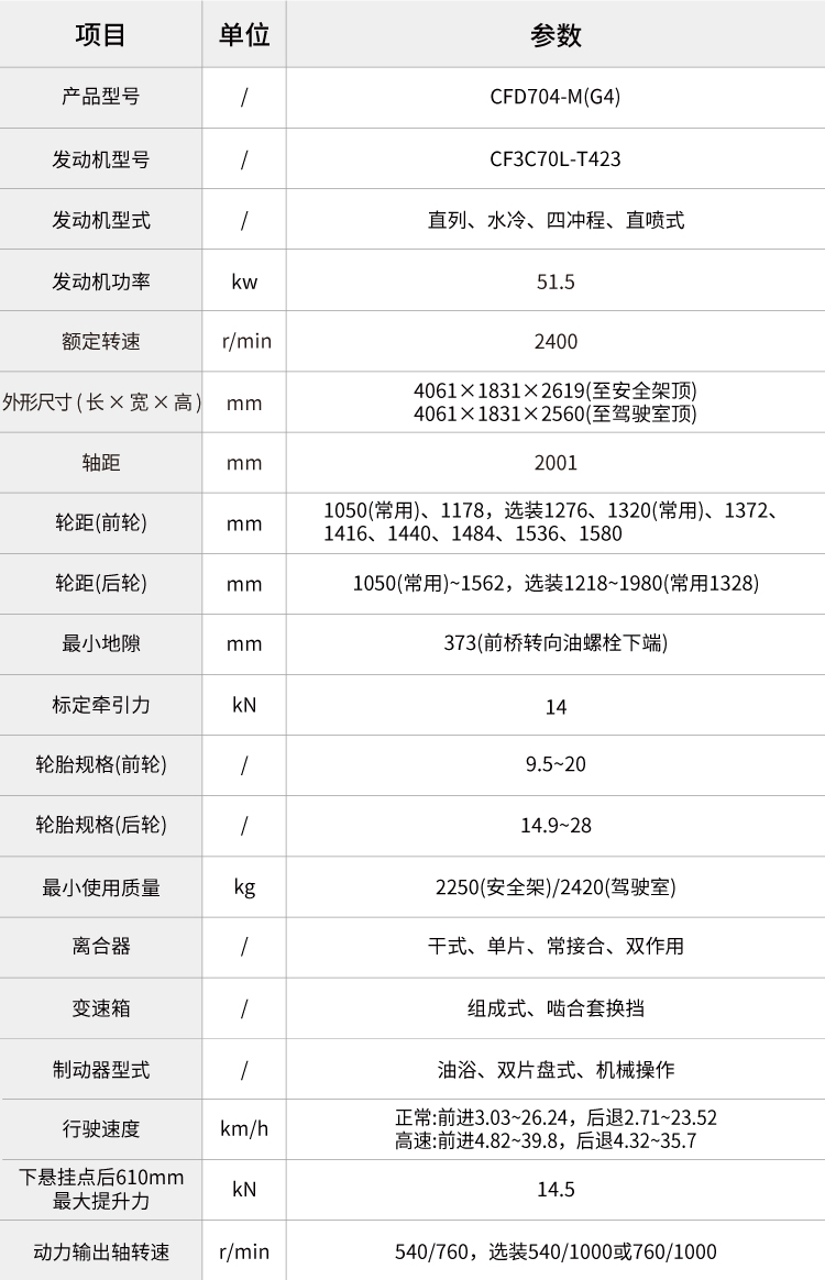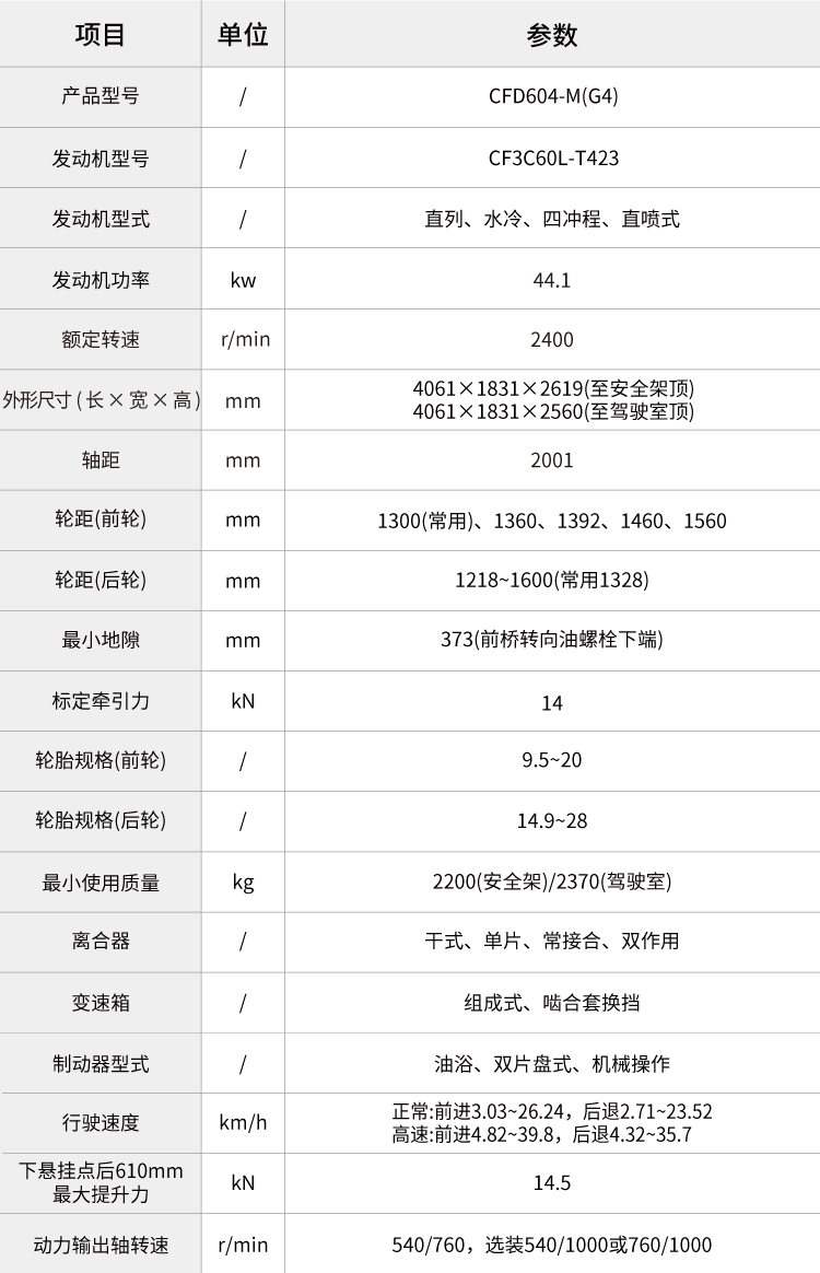 最大輪胎配置大。(可選平花胎前平花 9.5-20,后平花 14.9-28)