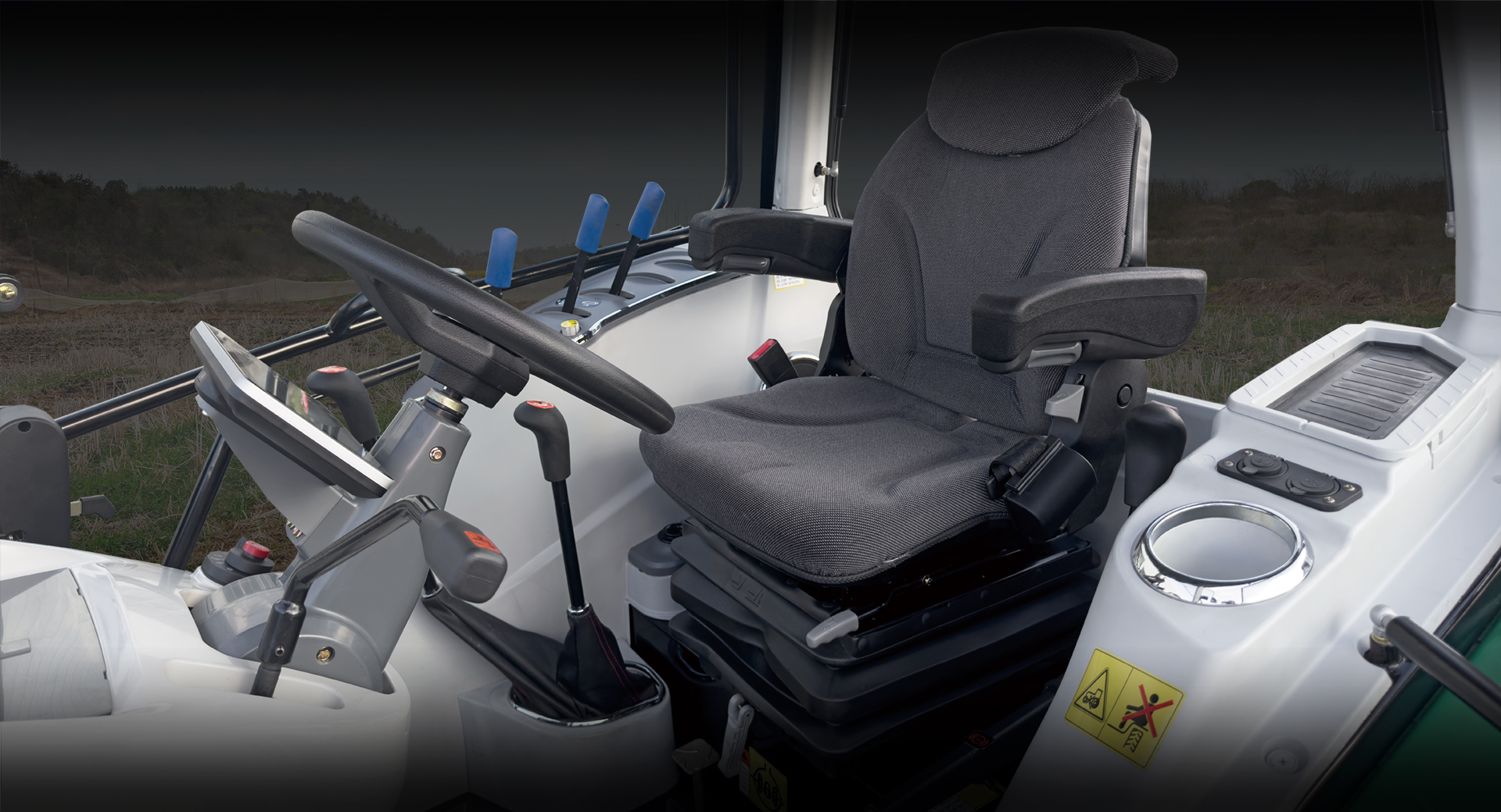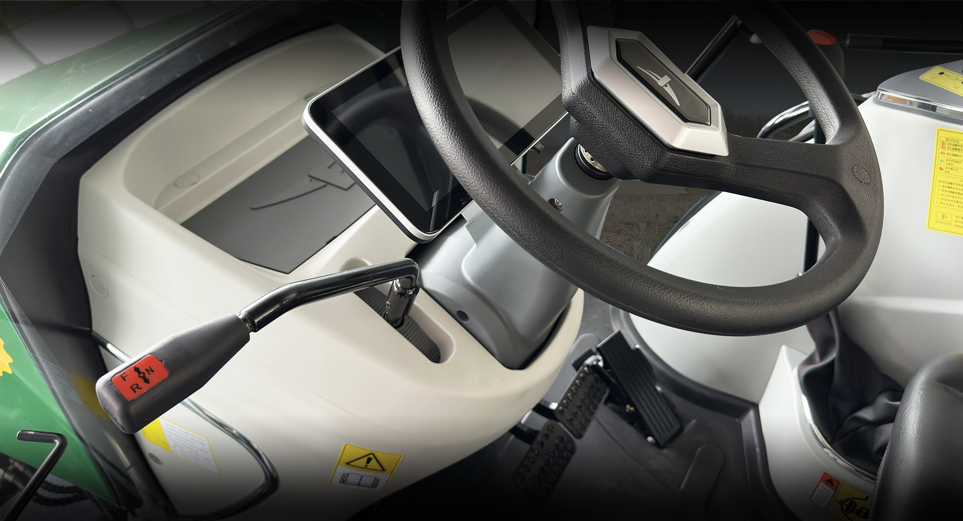 內(nèi)飾軟包、懸浮減震式座椅、懸浮屏、新USB充電口電源接口、新造型氣彈簧可調(diào)方向盤、全包彈性地板墊、高亮度工作燈; 觸摸式液晶懸浮式儀表,外觀新穎大方;懸浮屏儀表集整機儀表功能、故障報警指示、保養(yǎng)提醒、核心運行參數(shù)監(jiān)控等功能于一體。